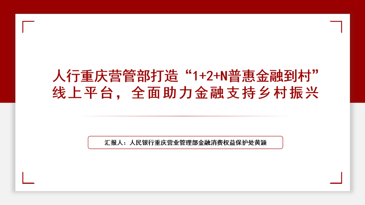 5月16日,在数字乡村创新应用集中推广启动仪式上,人民银行重庆营业管理部金融消费权益保护处副处长黄颖分享了人行重庆营管部打造的《1+2+N普惠金融到村》线上平台相关情况。